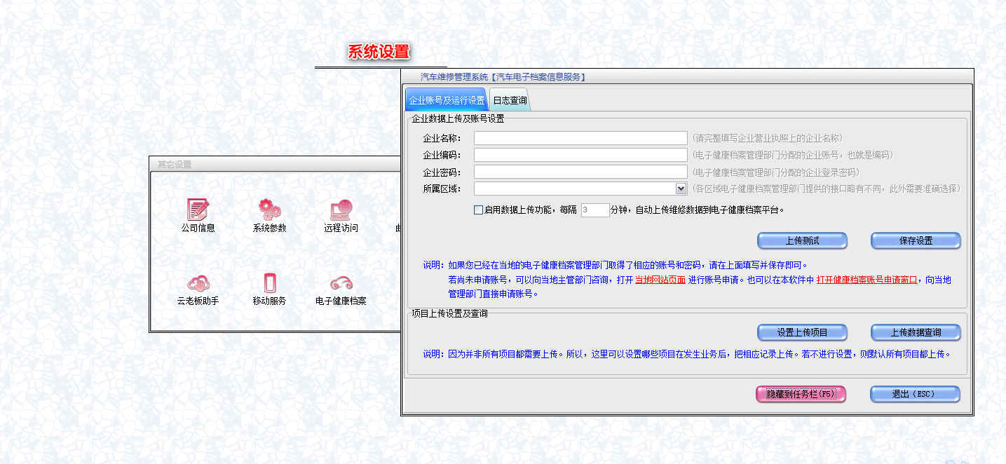 美萍汽车维修管理系统可以关联相关帐户,自动上传维修数据到电子健康档案平台